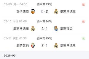此前巴萨1-2不敌赫塔费,皇马2分优势反超登顶。不过,皇马榜首仅体验了一轮,随后1-2奥萨苏纳、0-1赫塔费,从领先2分变成了落后4分。