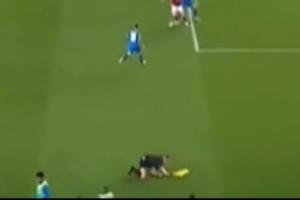 在阿森纳对阵勒沃库森的比赛,由于客队替补席占据边线,边裁被挤到了场内?