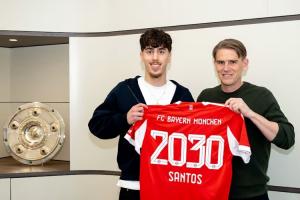 体育资讯03月23日讯 拜仁官方消息,俱乐部与19岁葡萄牙U19国脚中场大卫·桑托斯-戴伯尔签订一份到2030年的合同。