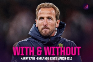 体育资讯4月1日讯 英格兰在友谊赛中0-1不敌日本,凯恩缺席此役,Opta统计了凯恩在场、缺席情况下英格兰队的战绩。