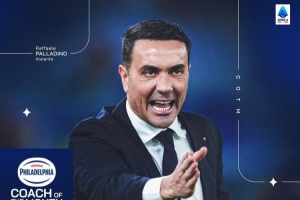 帕拉迪诺2月份带领亚特兰大参加4场意甲比赛,战绩3胜1平,意甲官方社媒晒出海报,确认他当选2月份最佳教练。
